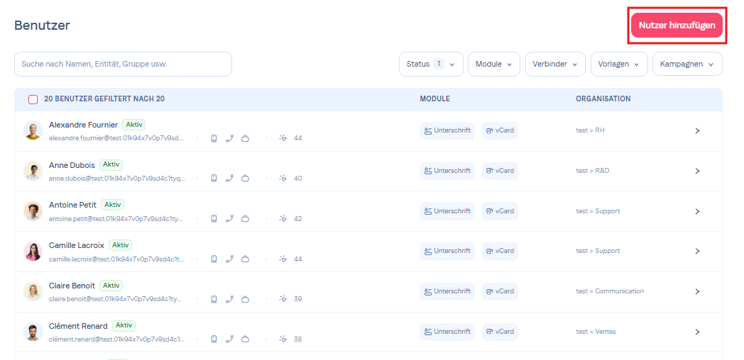 Gehen Sie zum Benutzermenü, und klicken Sie dann oben rechts auf Benutzer hinzufügen.
