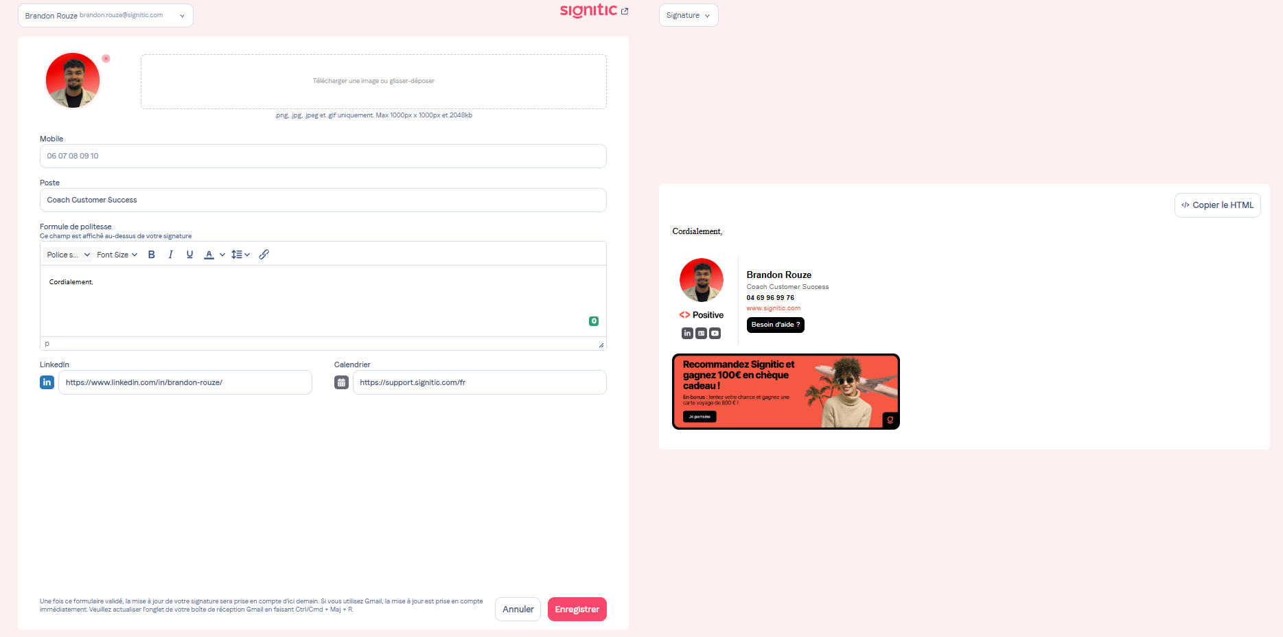 Als Endbenutzer wird Ihre Signatur täglich in Gmail aktualisiert. Falls Ihre Signatur nicht aktuell ist, stellen Sie bitte sicher, dass Sie Gmail aktualisieren (Strg/Cmd + R).