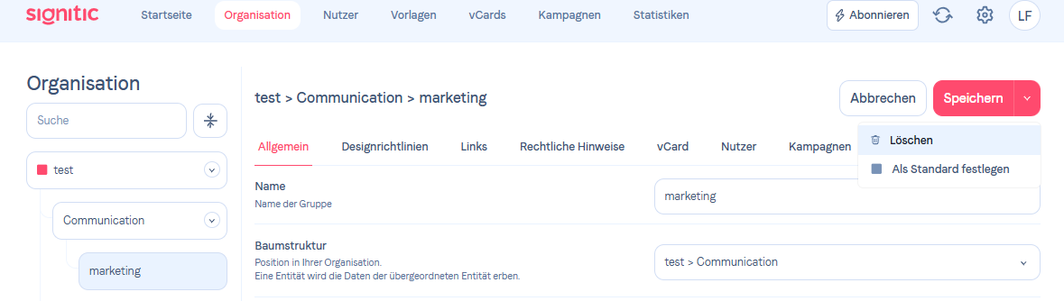Dieses Tutorial führt Sie durch die Schritte, die erforderlich sind, um eine Gruppe aus Ihrem Signitic-Konto zu löschen. Stellen Sie sicher, dass Sie die notwendigen Rechte haben, um diese Aktion auszuführen.