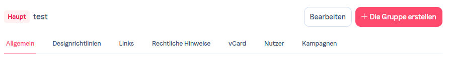 Wenn Sie eine Gruppe erstellen, können Sie deren hierarchische Struktur unter ihrem Namen auf der rechten Seite der Benutzeroberfläche verwalten. Sie können festlegen, ob diese Gruppe eigenständig ist, eine Gruppe der Stufe 2 oder eine Gruppe der Stufe 3.