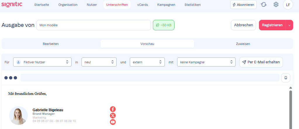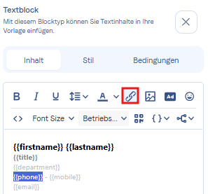 Um Ihre Kunden dazu zu bringen, auf Ihre Signatur zu klicken, haben Sie die Möglichkeit, Hyperlinks oder CTAs hinzuzufügen.