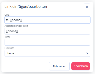 Es ist wichtig, "tel:{{mobile}}" in den Link einzufügen, um klarzustellen, dass es sich um ein anklickbares Feld für Telefone handelt, wodurch eine VoIP-Anwendung geöffnet oder der Anruf direkt von Ihrem Mobilgerät gestartet wird.