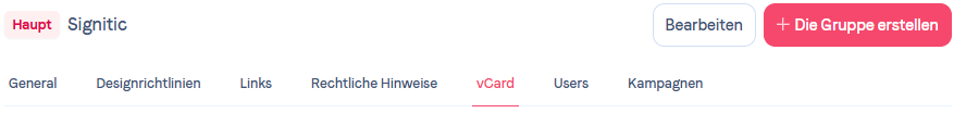 Gehen Sie zu den Einstellungen Ihrer VcardGehen Sie zu der Gruppe, in der Sie Ihre Vcard ändern möchten. Sobald Sie sich in der betreffenden Gruppe befinden, öffnen Sie den Vcard-Tab.