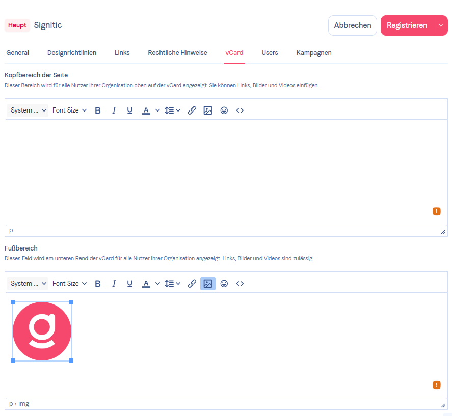 Ihre vCard übernimmt das grafische Design Ihrer Signatur, um eine einheitliche Darstellung über alle Module hinweg zu gewährleisten.