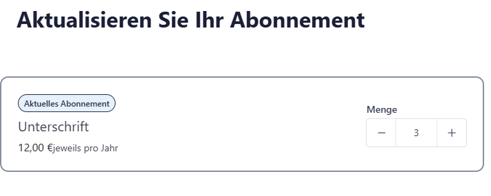 Sie können die Anzahl der Lizenzen auswählen, die Sie hinzufügen möchten, und das Abonnement aktualisieren.