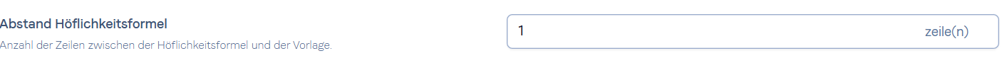 Gehen Sie zu Ihren Einstellungen im Unterreiter Signatur. Klappen Sie die Optionen auf, um “Abstand Grußformel“ zu finden.