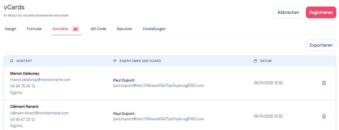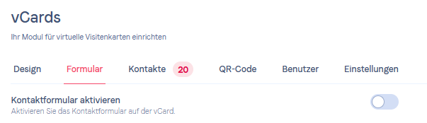 Formular für Informationen aktivieren und verwaltenUm Ihr Formular zu aktivieren, gehen Sie in den Tab vCards in Ihrem Signitic-Konto.
