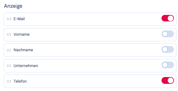 Sie können dann festlegen, welche Informationen beim Ausfüllen abgefragt werden sollen.