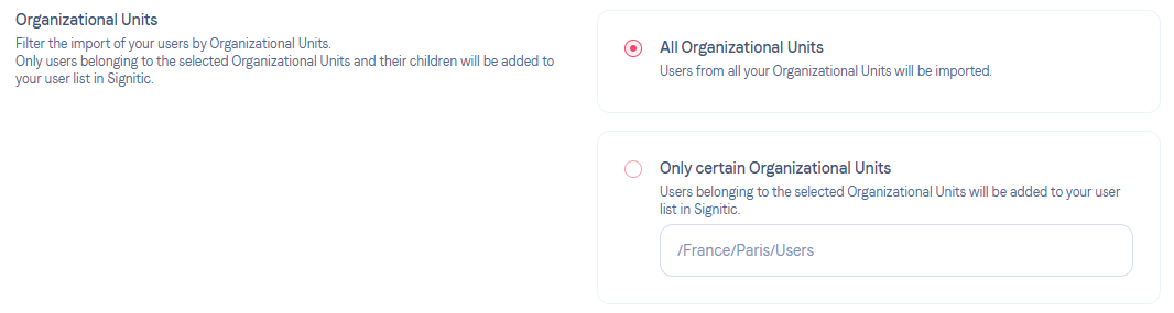 Sobald die Gruppen auf Ihrer Seite erstellt wurden, können Sie sie zu Signitic hinzufügen. Gehen Sie einfach auf die Registerkarte „Filter“ Ihres Google-Workspace-Connectors in Signitic. Sie können sie dann zu den verfügbaren Gruppen hinzufügen.