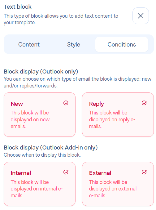 If you are using Outlook you have the choice of whether or not your icons appear when you send a new message or reply to an email. You can also choose according to the type of email (internal/external).
