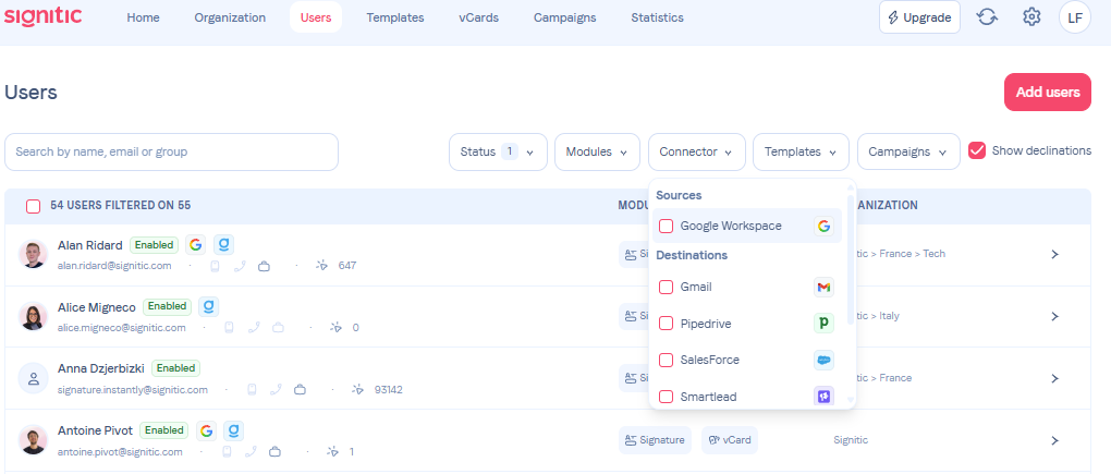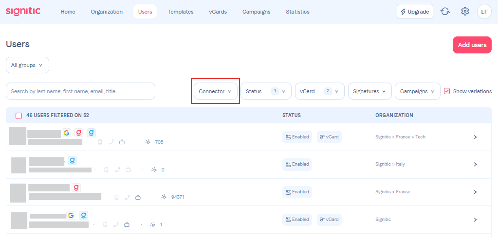 With Signitic, you can check if your employees are connected to the platform on Outlook.
