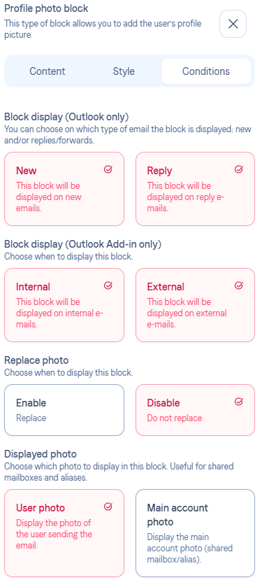 You have the possibility to choose the Replace option if your user does not have a photo. In this case, the photo will be replaced by the company logo.