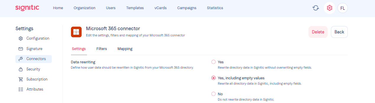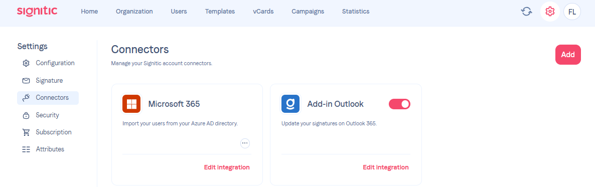 When your users are first loaded, Signitic retrieves the information from your connector. This data is loaded once for each addition in Signitic.