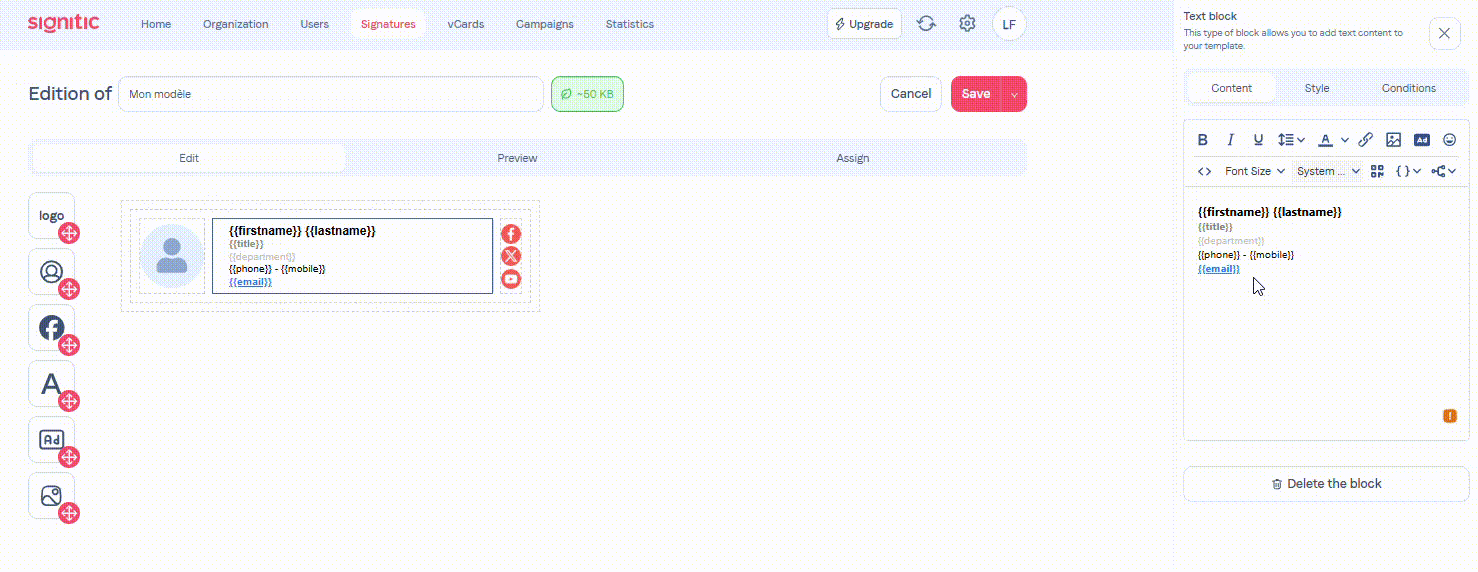 Once this is done, it is also possible to remove the underline from the link. Here is an article that can help you with that.