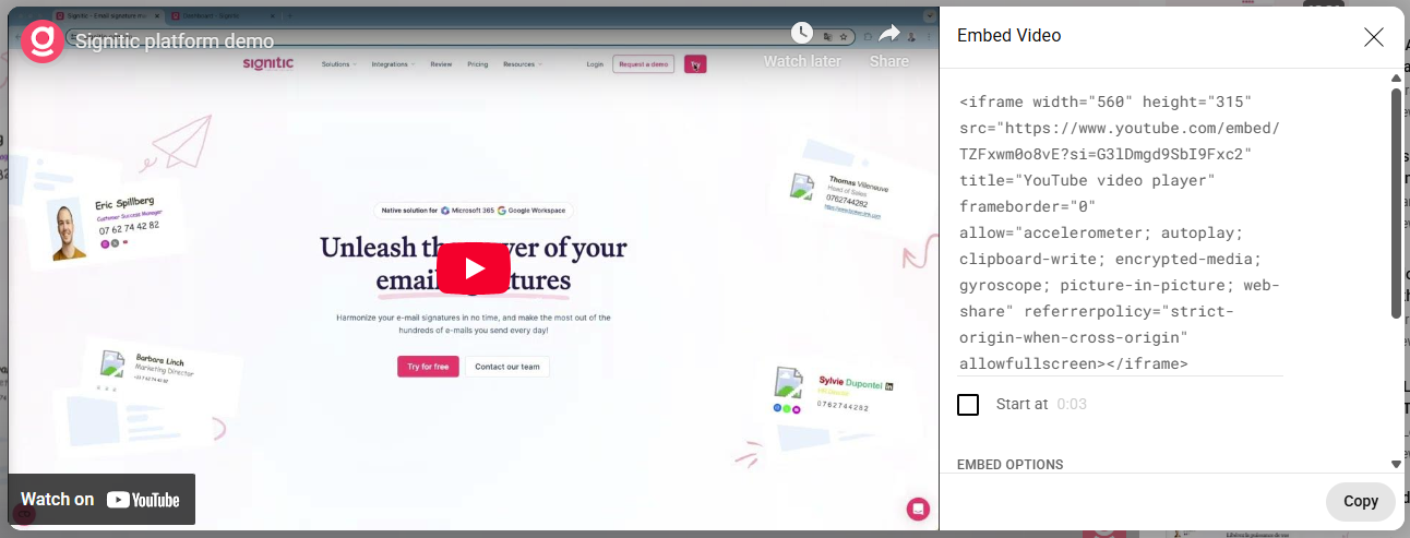 Once this is done, a window will open, click on "Embed" then "Copy" at the bottom left: