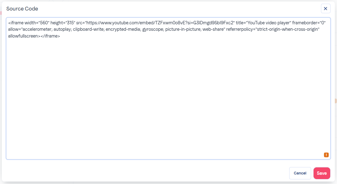Once the field is open for source code modification, paste the code taken from YouTube: