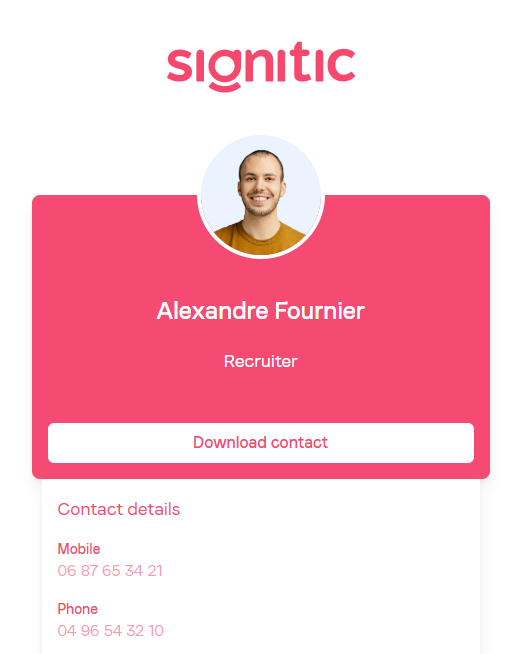 Your Vcard adopts the graphic charter of your signature for consistency across your different modules.