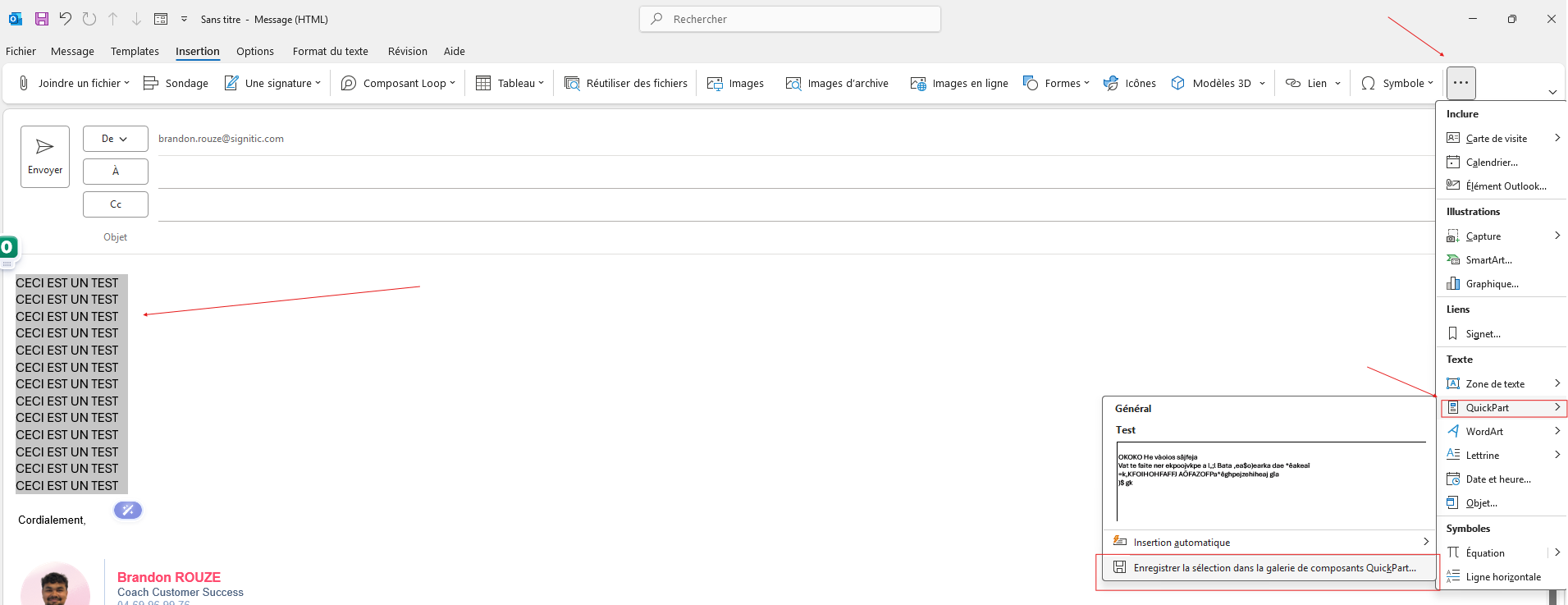 Signitic inserts the signature into the signature block. If you use signatures to create your email templates, here is a solution recommended by Microsoft for this purpose.