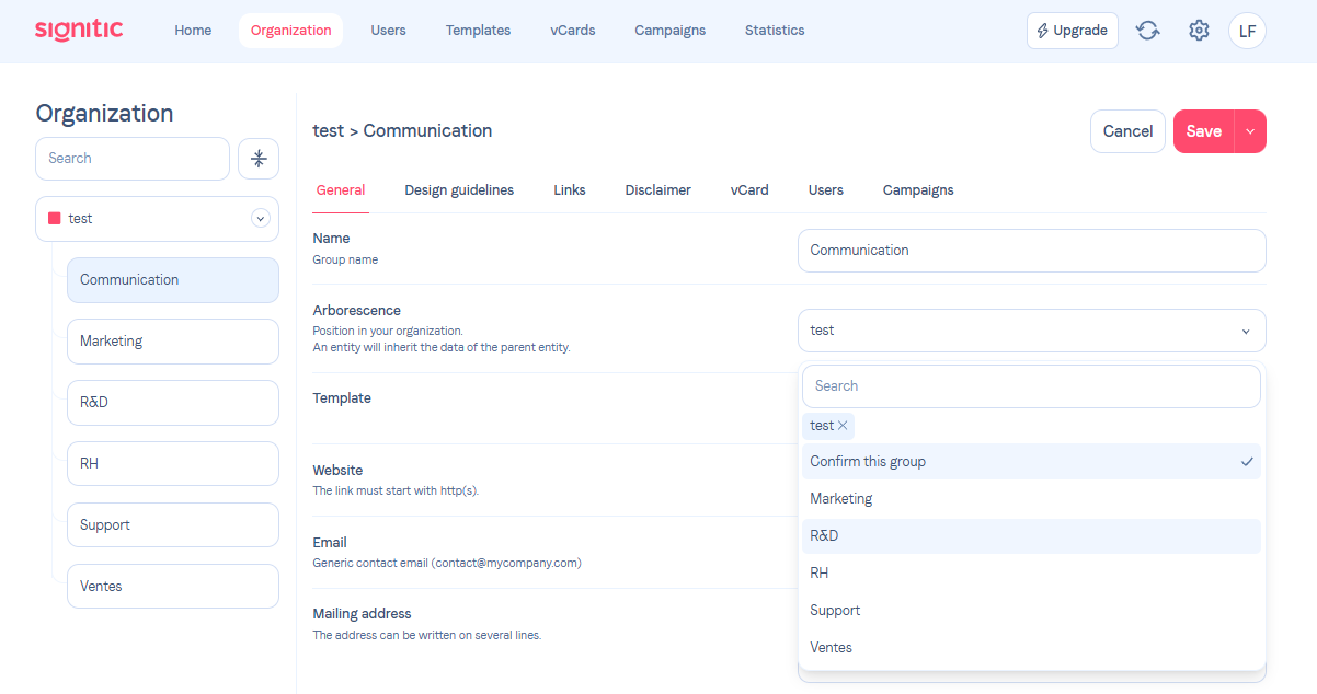 The organization of groups in Signitic is essential for effective management of signatures and users. By structuring your hierarchy correctly, you can easily apply specific signatures to groups of employees and simplify the administration of your organization. Most importantly, you will be able to use a single template for managing all these groups.