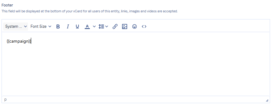 It is possible to add your current campaign in the footer (bottom) of your Vcard. Here are the steps to follow.