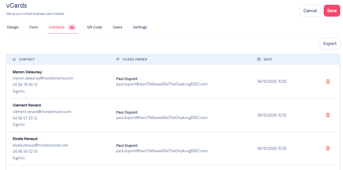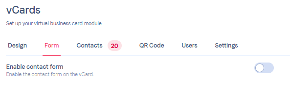 Activate and manage the information formTo activate your form, go to the vCards tab in your Signitic account.