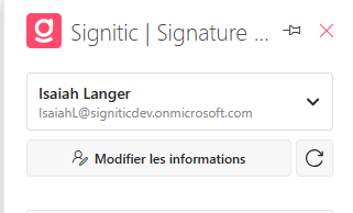 Dans la section Comptes liés, en haut, sélectionnez l'utilisateur dont vous souhaitez modifier les données. Cliquez ensuite sur Modifier les informations, vous accédez ainsi au formulaire de modification de l'utilisateur. Cliquez sur Enregistrer en bas du formulaire et les données et la signature seront mises à jour ! Et c'est tout !