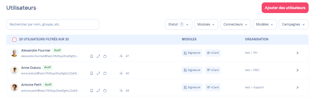 Accédez au menu UtilisateursPour copier la clé de connexion, rendez-vous dans le menu Utilisateurs.