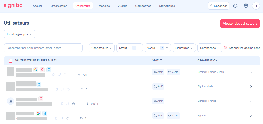 Grâce à Signitic, vous pouvez savoir si vos collaborateurs sont reliés à la plateforme sur Outlook.