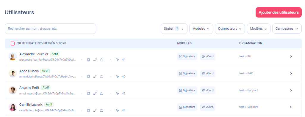 Pour copier la signature d'un utilisateur, rendez-vous dans votre page Utilisateurs.