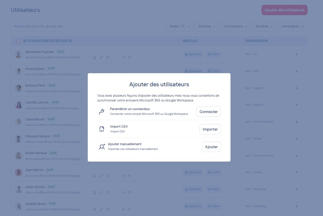 Importez vos utilisateurs vos utilisateurs manuellement.