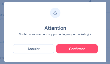 Une boîte de dialogue apparaîtra pour confirmer votre action. Lisez attentivement les informations et confirmez la suppression en cliquant sur "Confirmer".