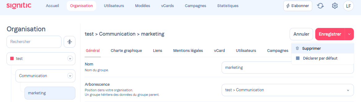 Ce tutoriel vous guidera à travers les étapes nécessaires pour supprimer un groupe sur votre compte Signitic. Assurez-vous d'avoir les droits nécessaires pour effectuer cette opération.