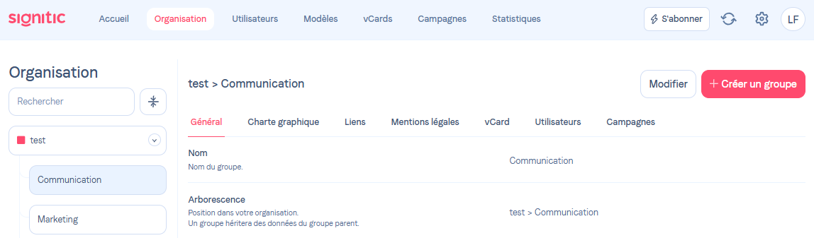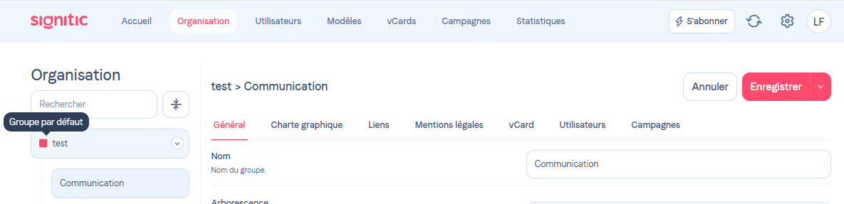 Pour effectuer cette manipulation, vous pouvez vous rendre sur l'onglet Organisation de Signitic.