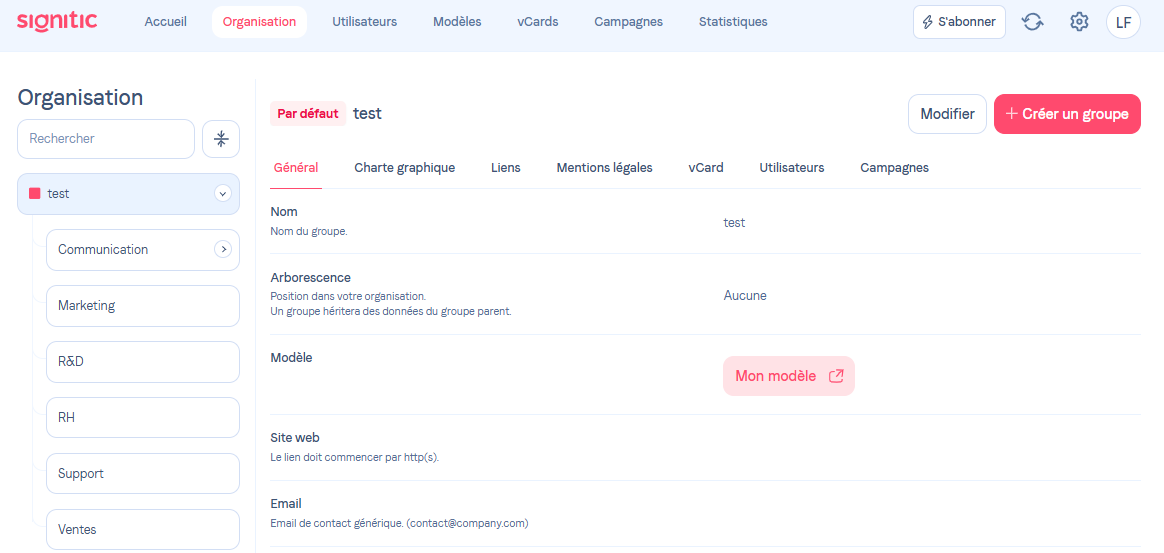 Rendez-vous sur l'onglet OrganisationAvant de commencer, il est important de comprendre l'héritage de donnée concernant vos différents groupes. Pour cela vous pouvez vous rendre sur cet article.