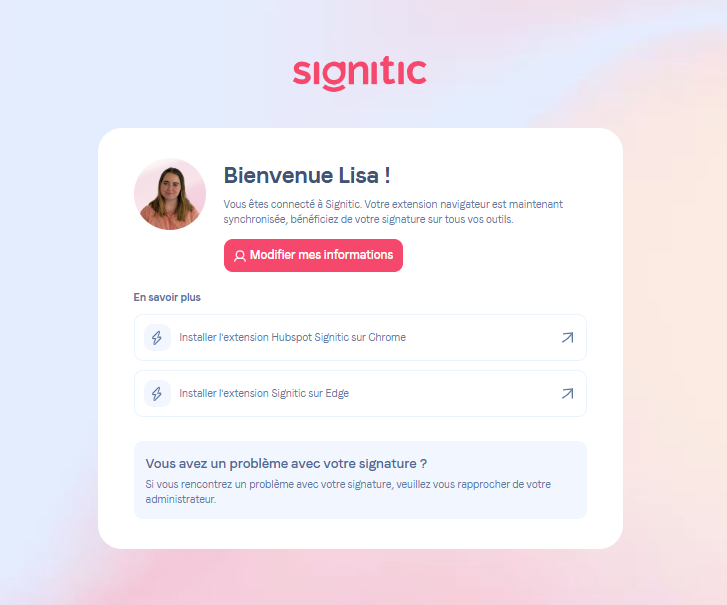 En cliquant sur “Modifier mes informations”, vous accèder au formulaire de modification de votre signature.
