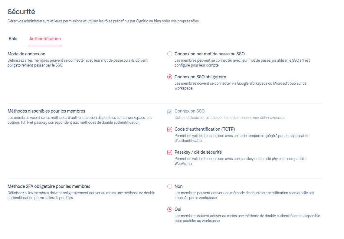 Questions fréquentesSignitic me demande de configurer la 2FA, mais je ne l'ai pas activée moi-même. Votre administrateur a rendu la 2FA obligatoire sur votre espace de travail. Suivez les étapes ci-dessus pour l'activer.