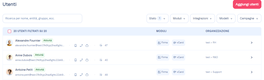 Accedi al menu utentePer copiare la chiave di accesso, vai al menu Utenti.