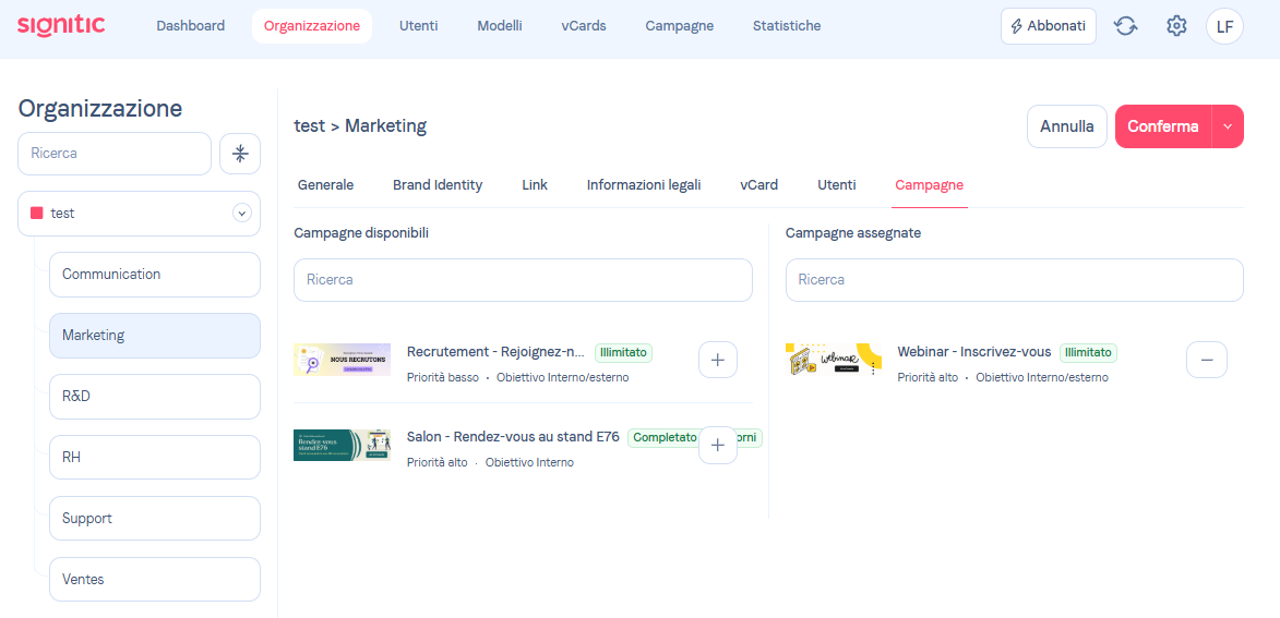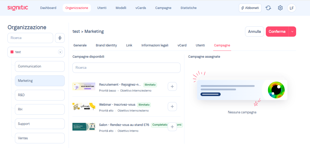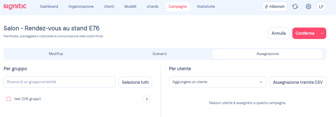 Per poter indirizzare i tuoi messaggi nelle tue firme, puoi assegnare campagne a determinati utenti o gruppi di utenti.