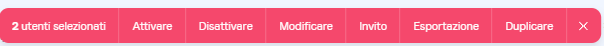 Accedi al menu Utenti, quindi seleziona i tuoi utenti usando le caselle di selezione a sinistra di ogni utente oppure filtrali con i filtri disponibili in alto nella pagina.