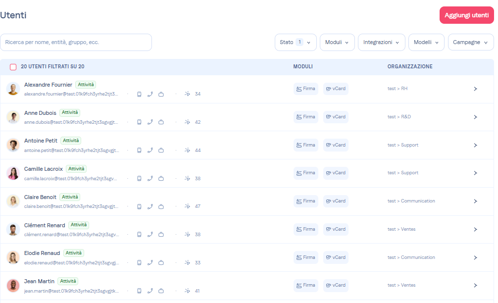Puoi creare varianti (declinazioni) dei tuoi utenti da Signitic.