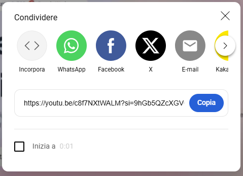 Recupera il codice del tuo videoVai sul tuo video di Youtube e clicca sul pulsante "Condividi".