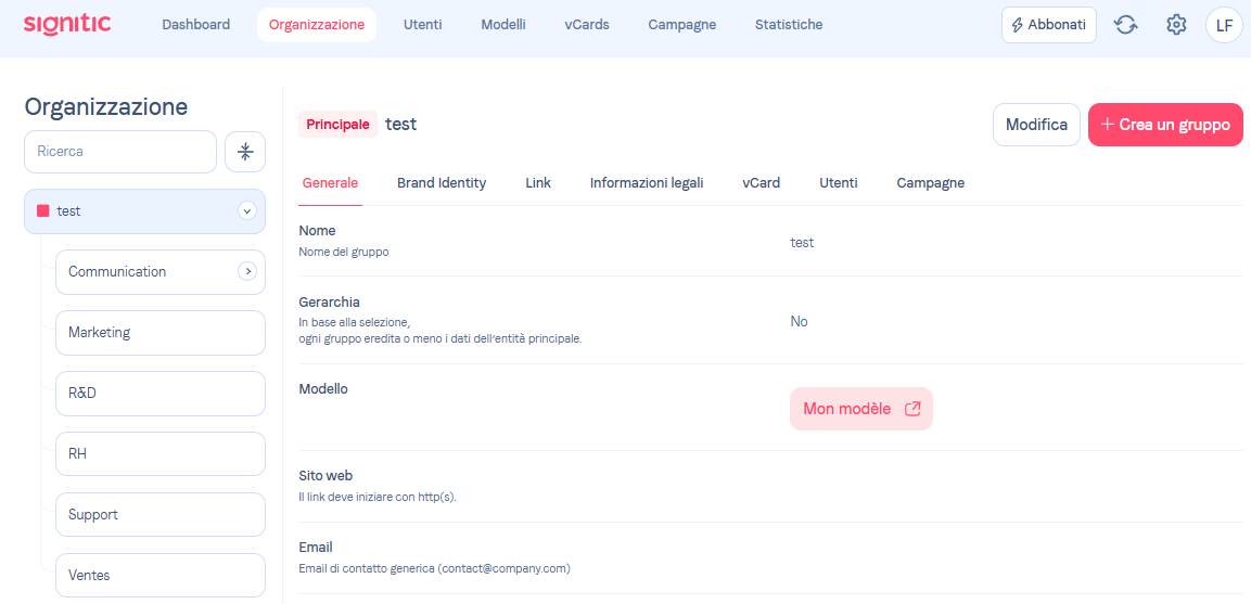 Vai alla scheda OrganizzazionePrima di iniziare, è importante comprendere l'eredità dei dati relativi ai tuoi diversi gruppi. Per farlo, puoi consultare questo articolo.