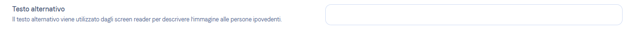 Quando aggiungi un elemento visivo in una Campagna, hai la possibilità di inserire un testo alternativo. Questo verrà letto ad alta voce dalle tecnologie assistive, migliorando così l’accessibilità delle tue comunicazioni.